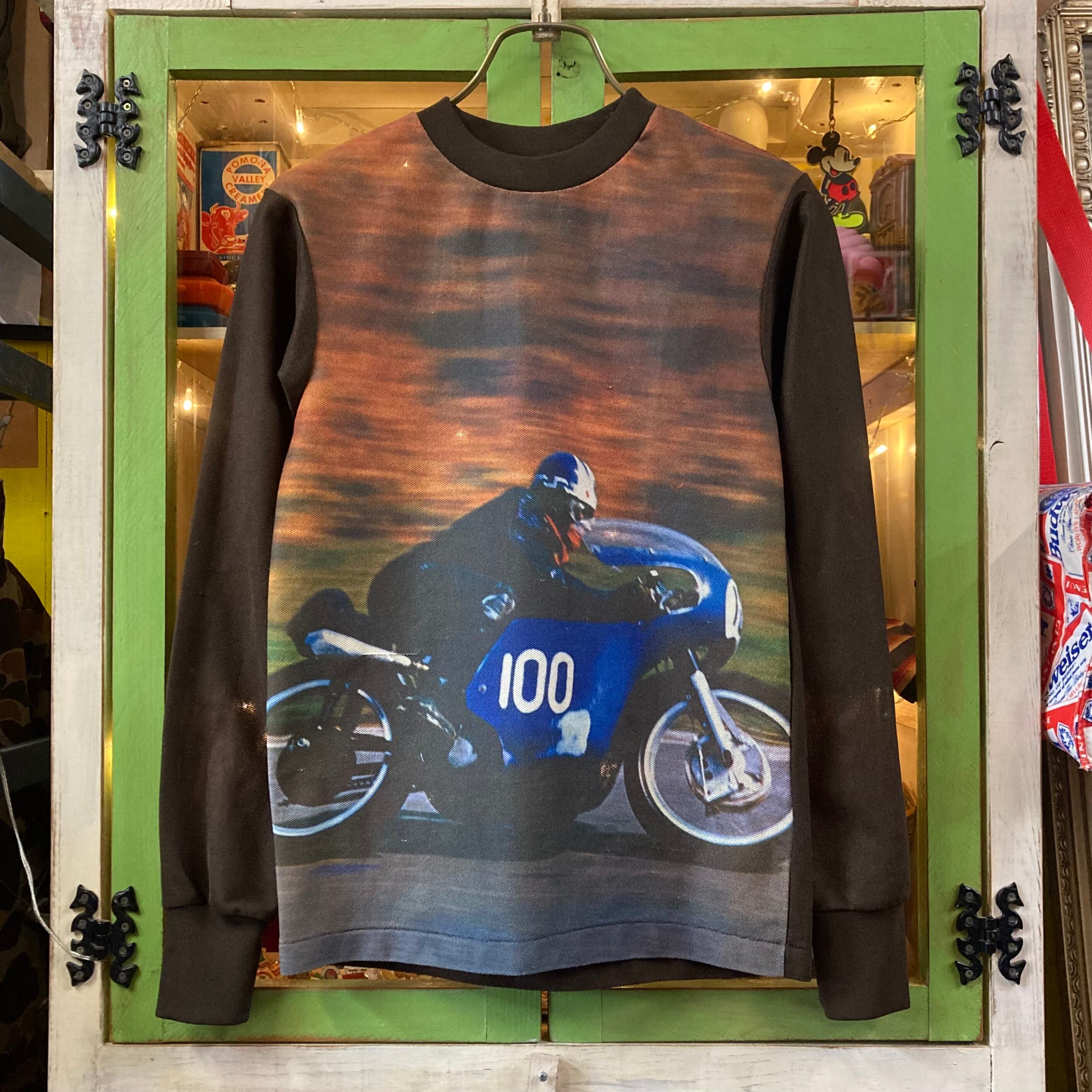 全面に高速走行するバイクレーサーが大きくプリントされた、非常に珍しいデザインの一枚♪