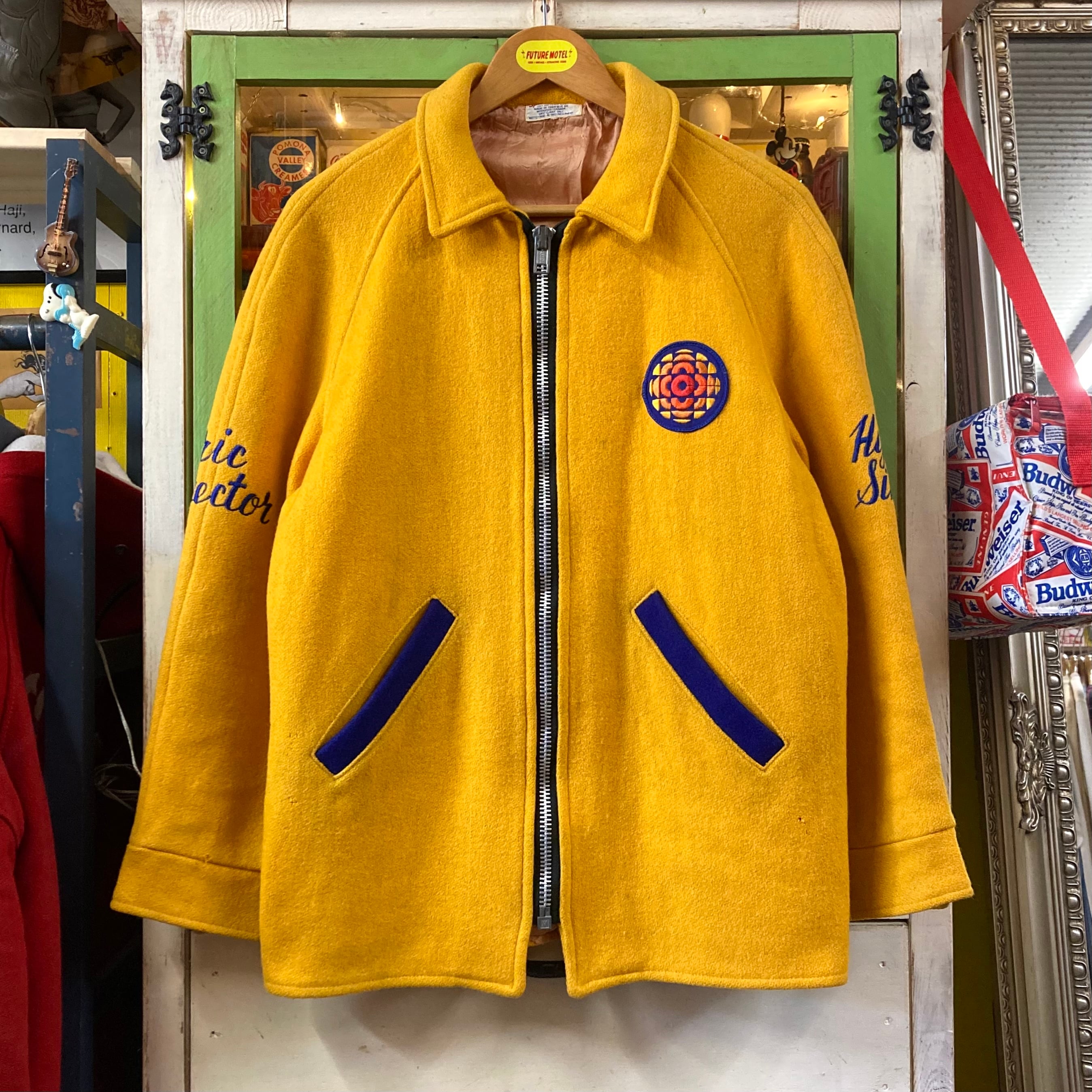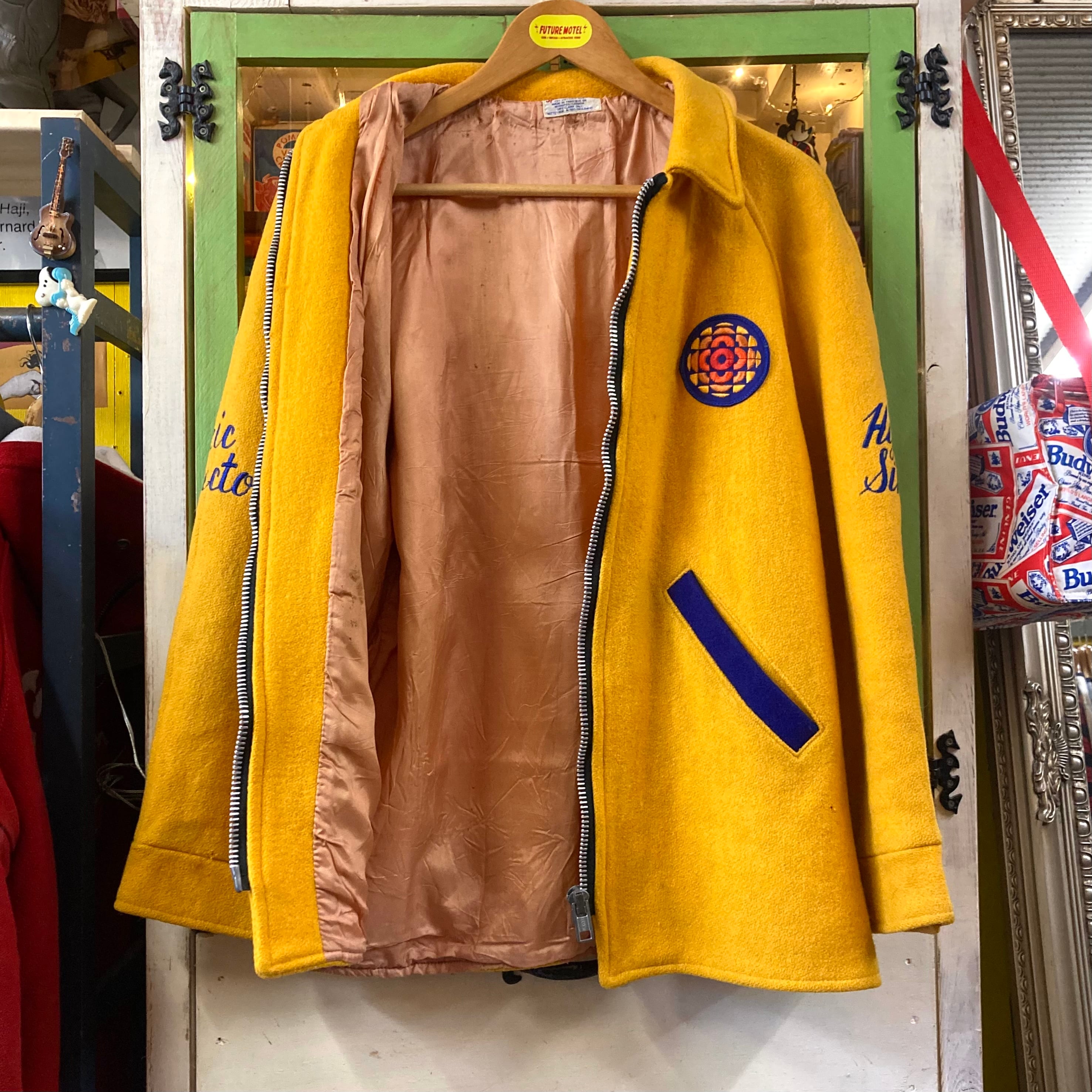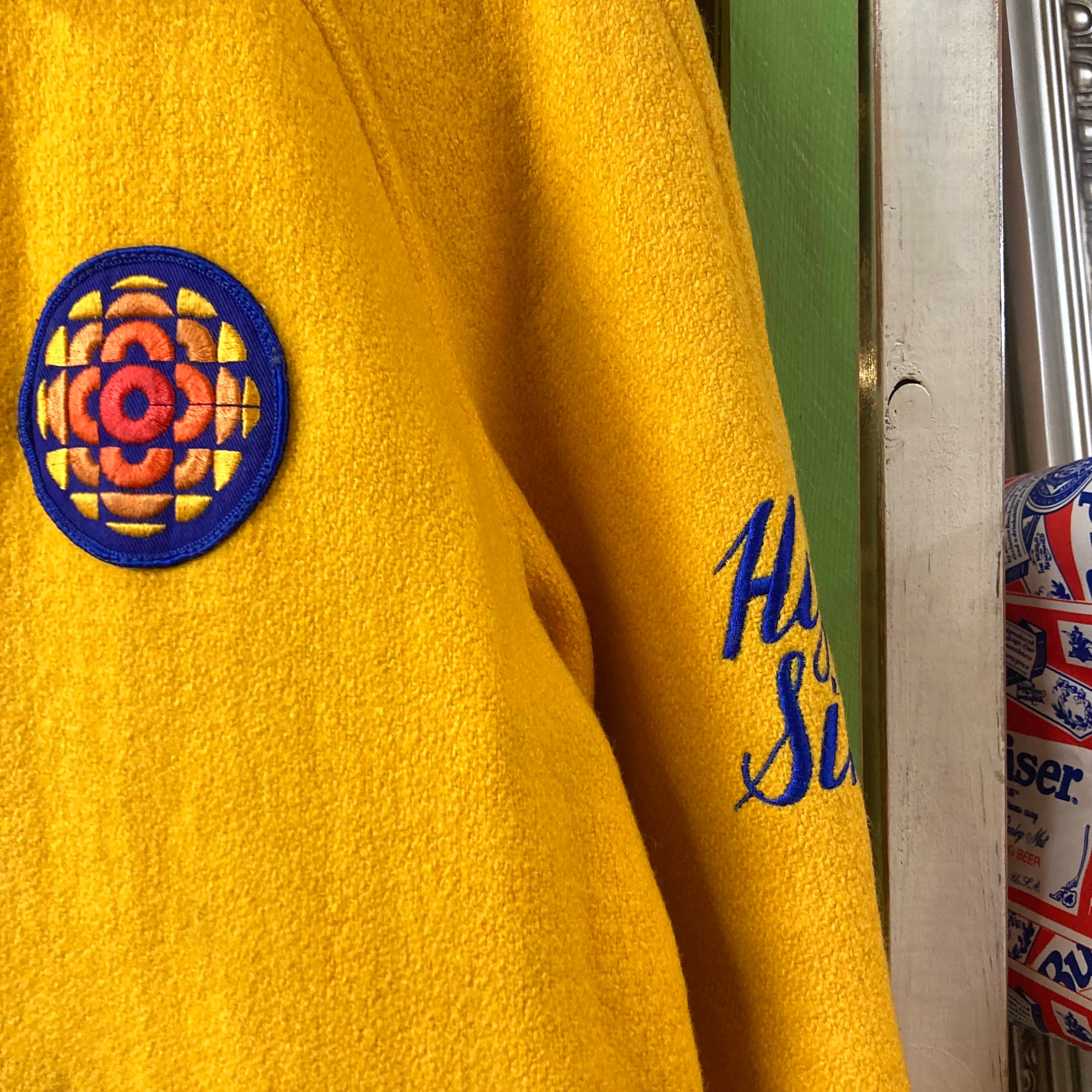 胸にはCBC公式ロゴパッチ、右袖に**「eric director」左袖に「hymn sing」**のチェーンステッチ刺繍が入る、当時の番組ディレクター(Eric氏)番組関係者用として制作された一点モノのストーリー系ヴィンテージです。
