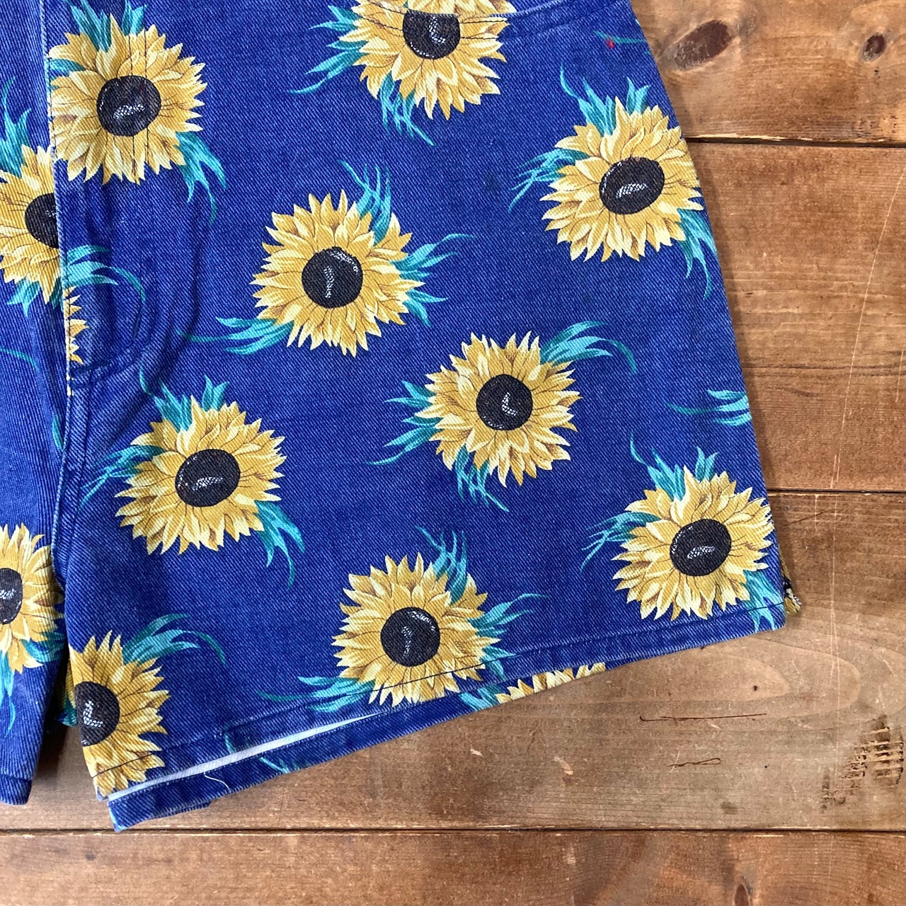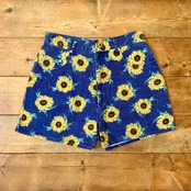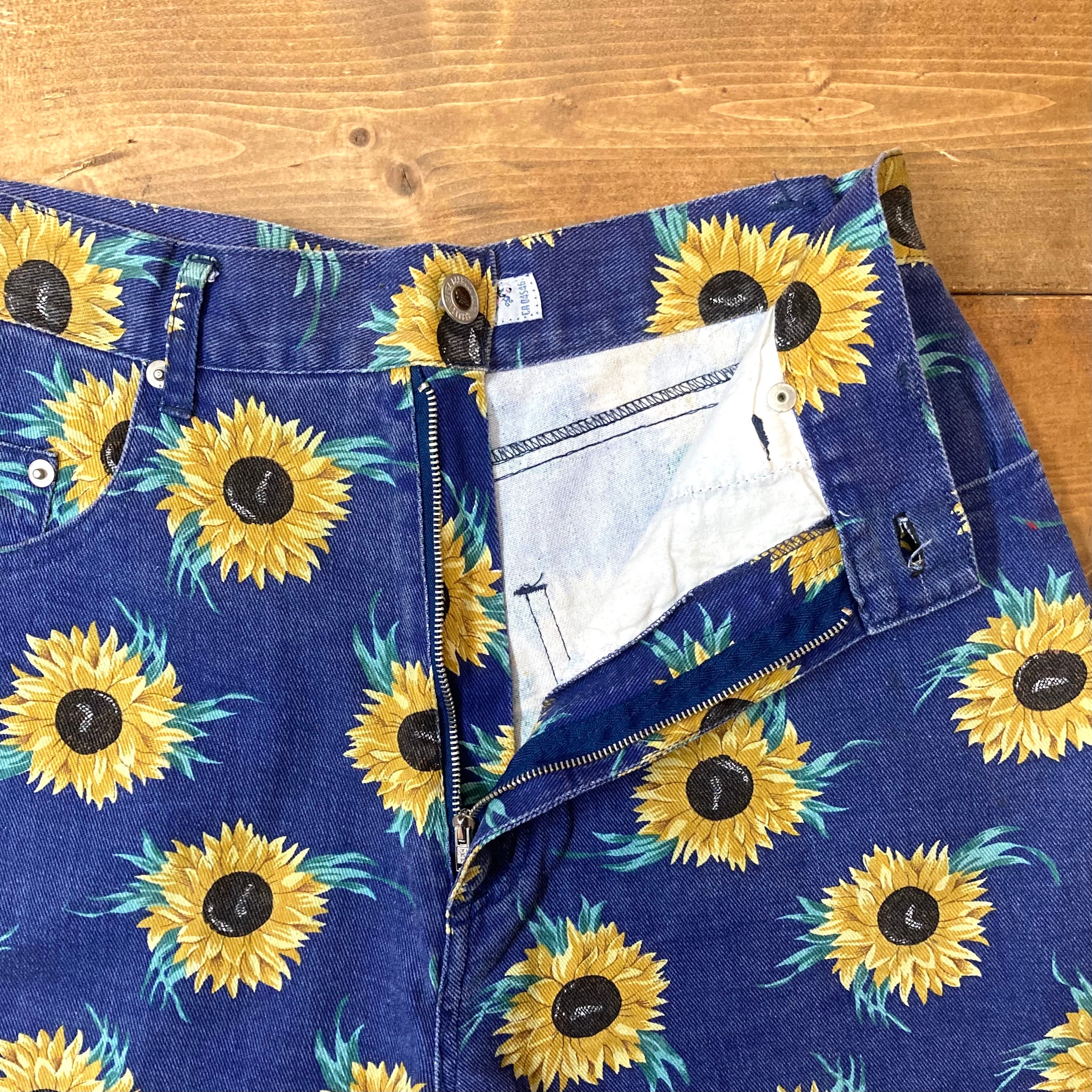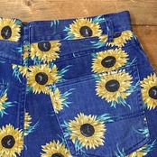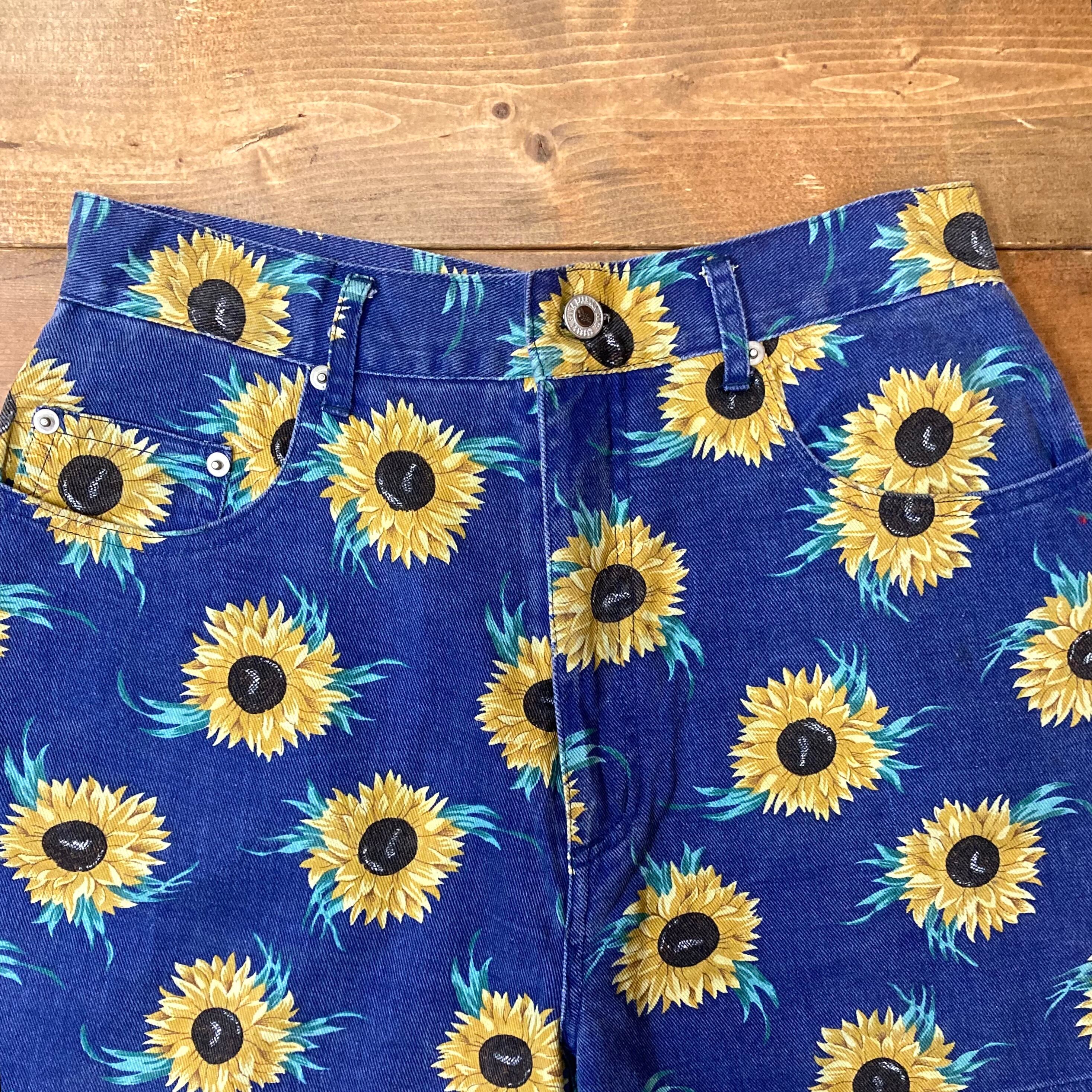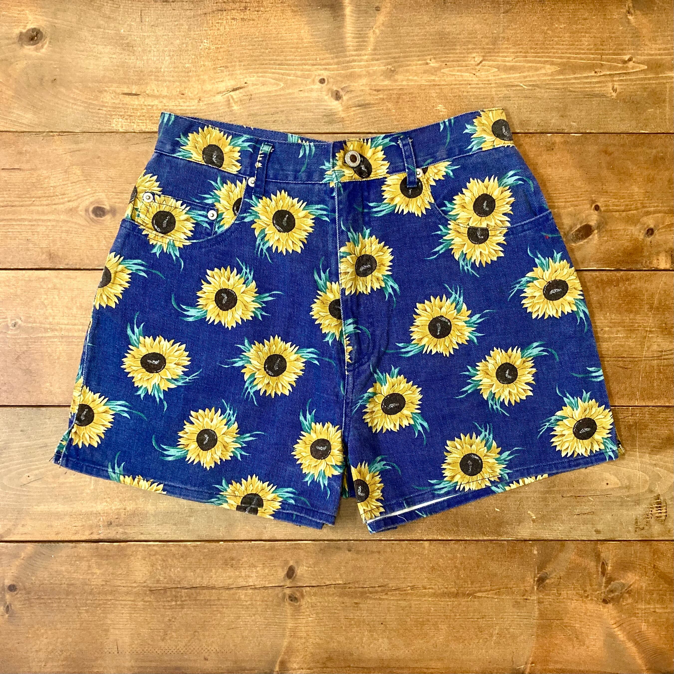 インパクト抜群のひまわり総柄デニムショーツ。