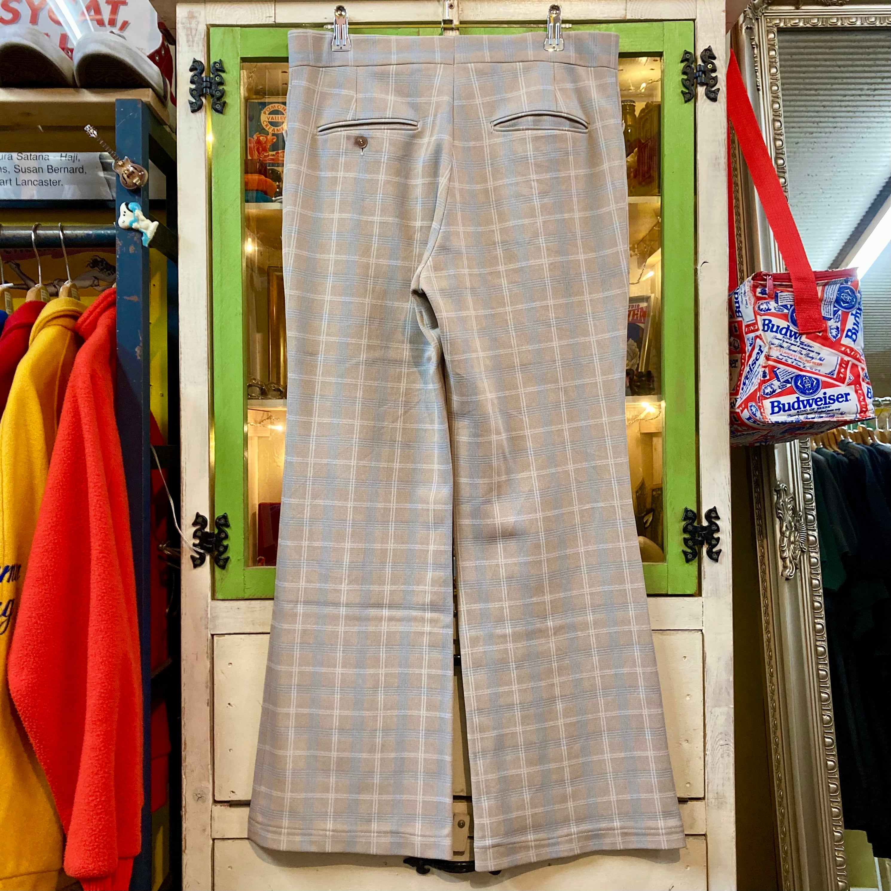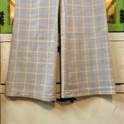 淡いベージュベースにブルーラインのチェック柄で、上品さとヴィンテージ感が絶妙にミックスされた1本。シルエットは緩やかなフレアパンタロン。