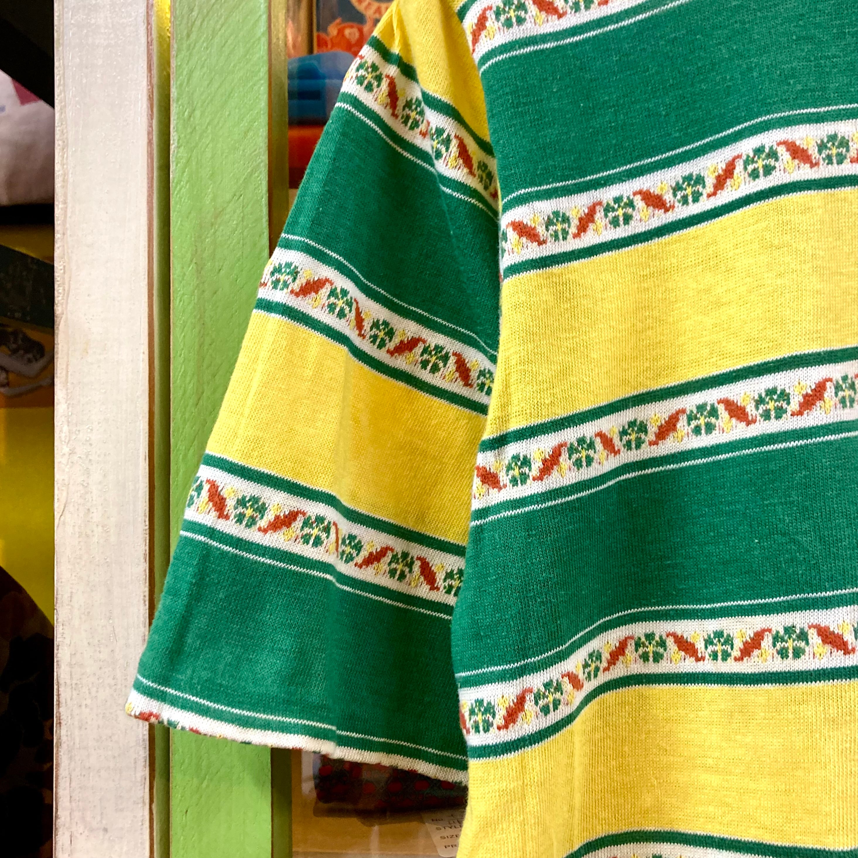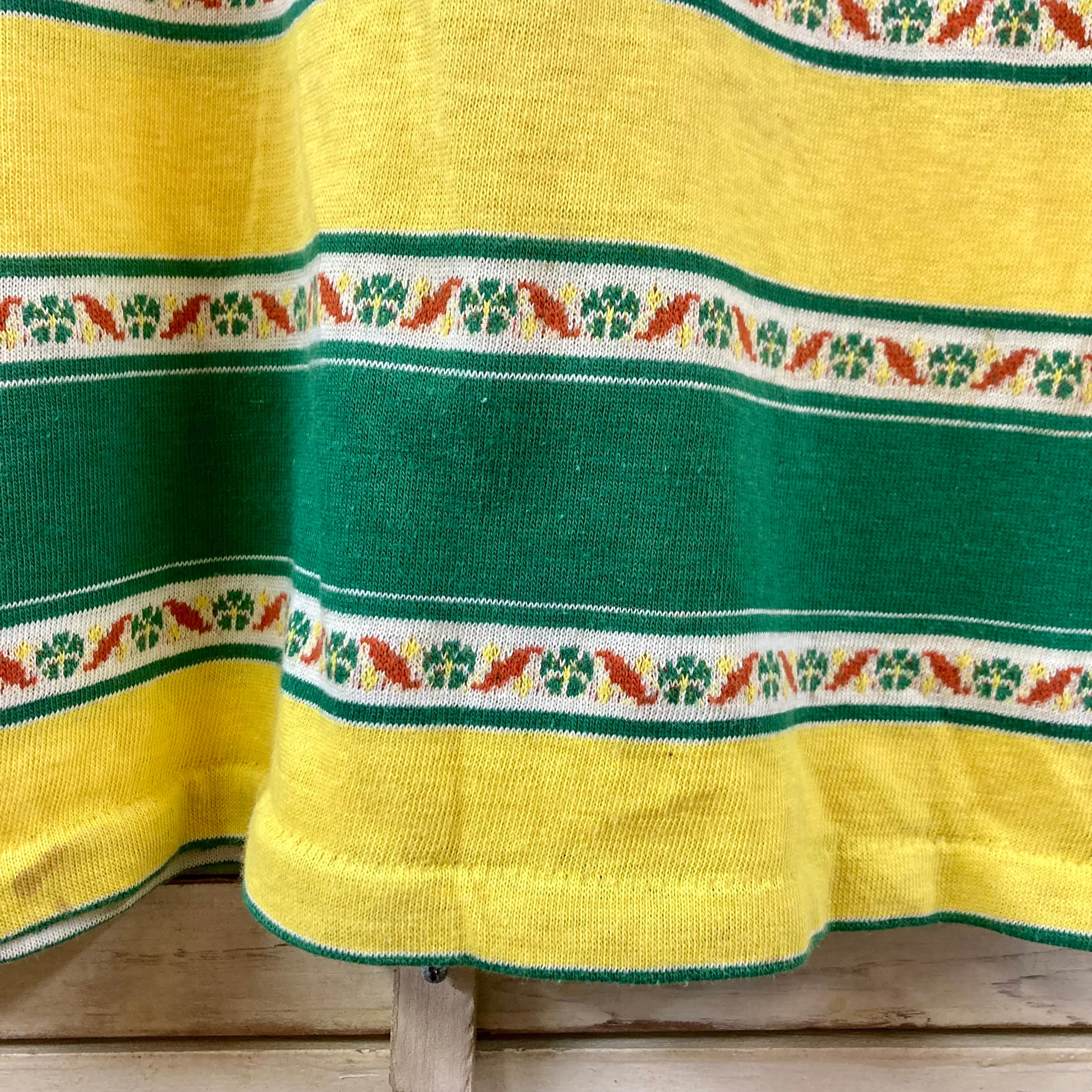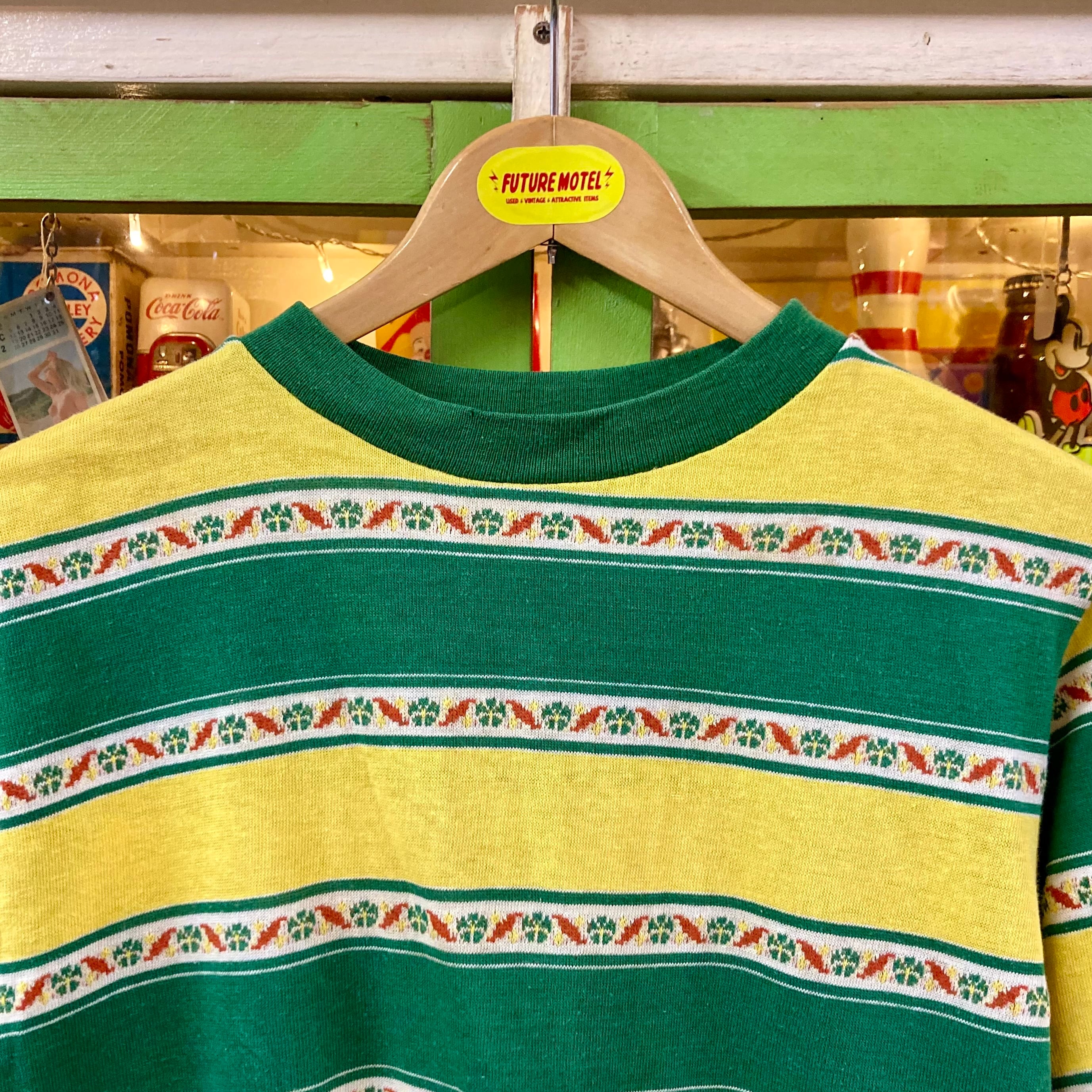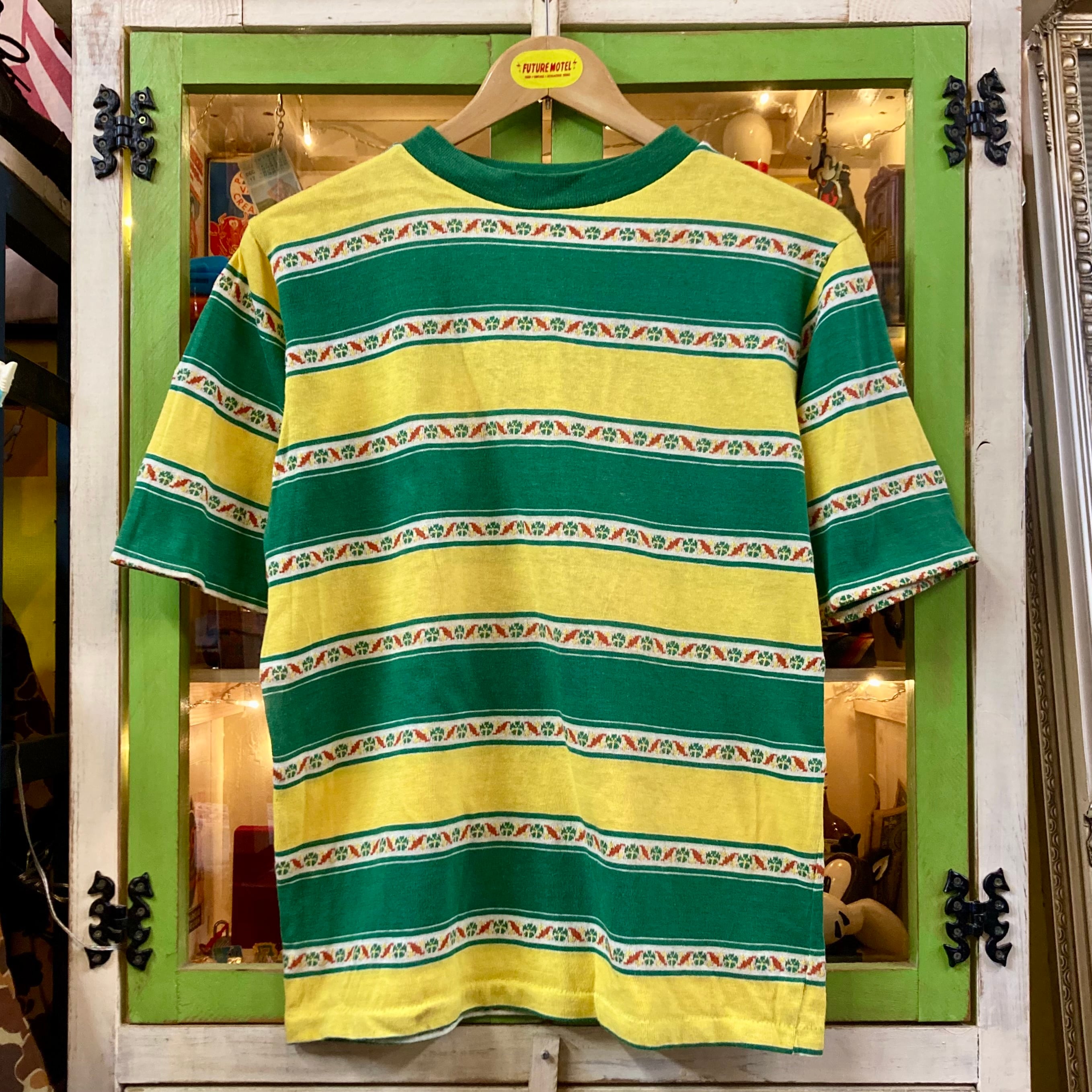 レトロな雰囲気が抜群の70年代総柄ボーダーニットTシャツ。