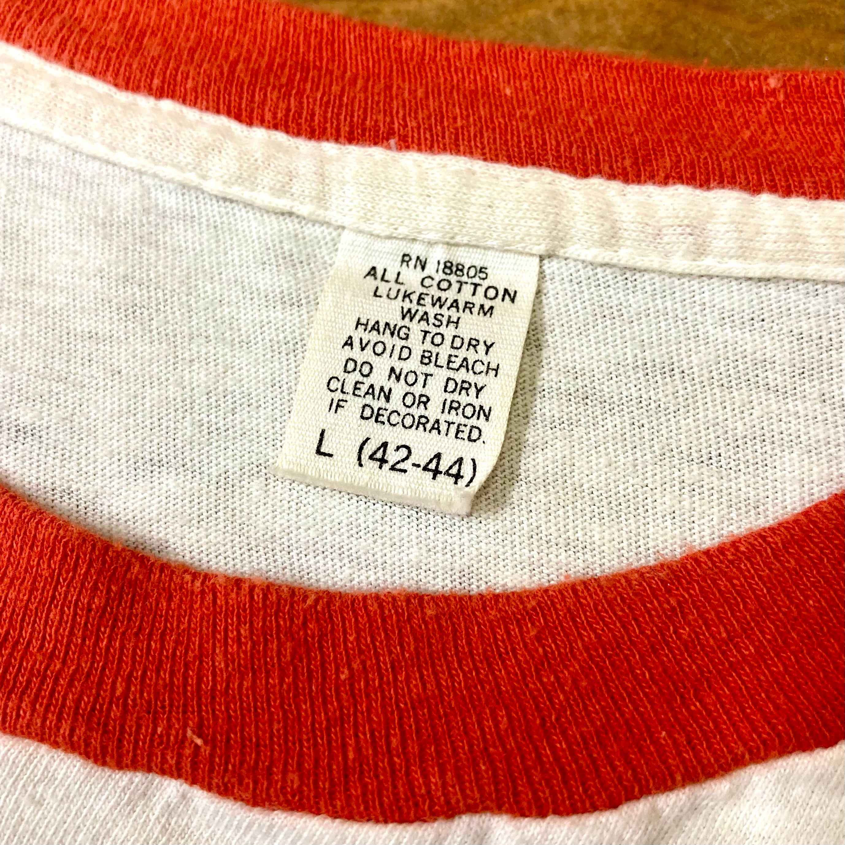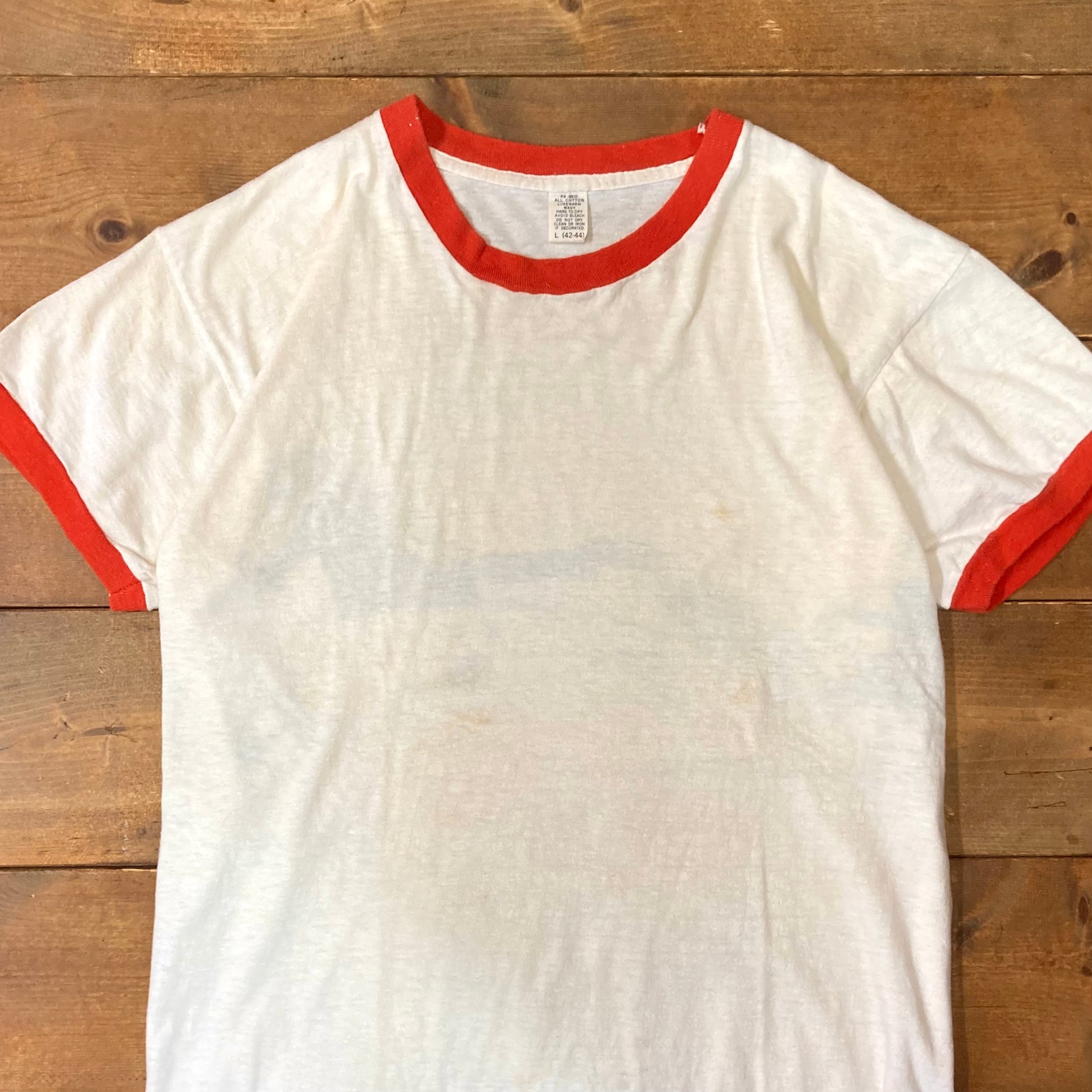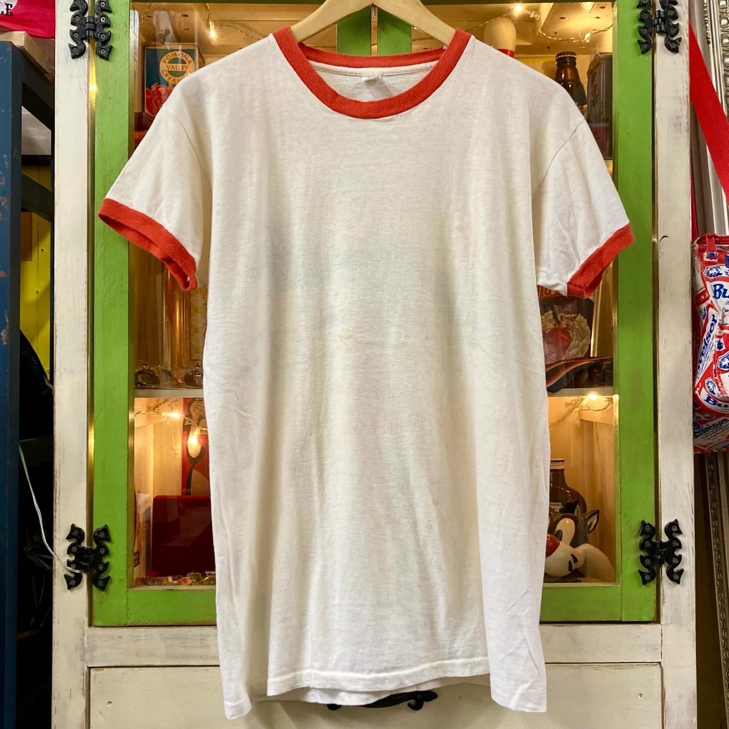 アート感・一点物のような存在感が魅力な当時の雰囲気そのままの80年代赤袖リンガーシャツです。